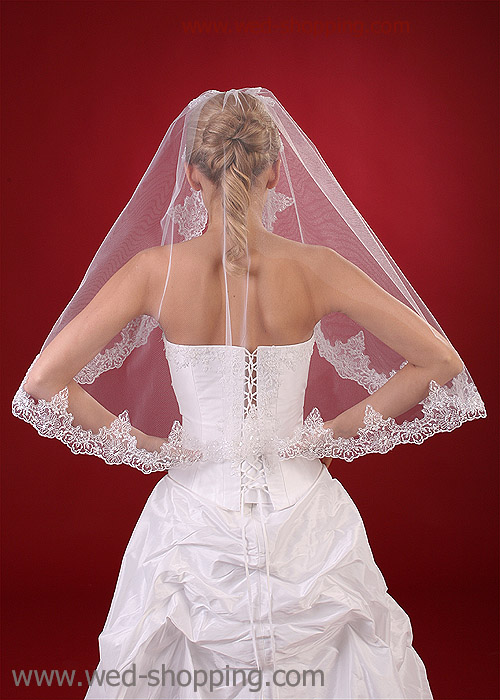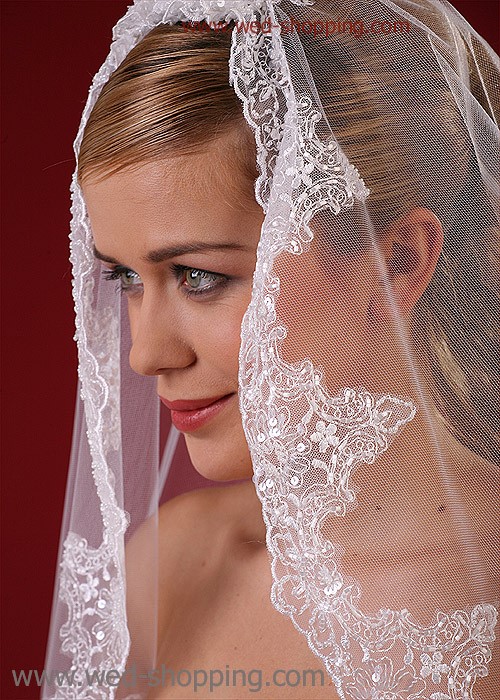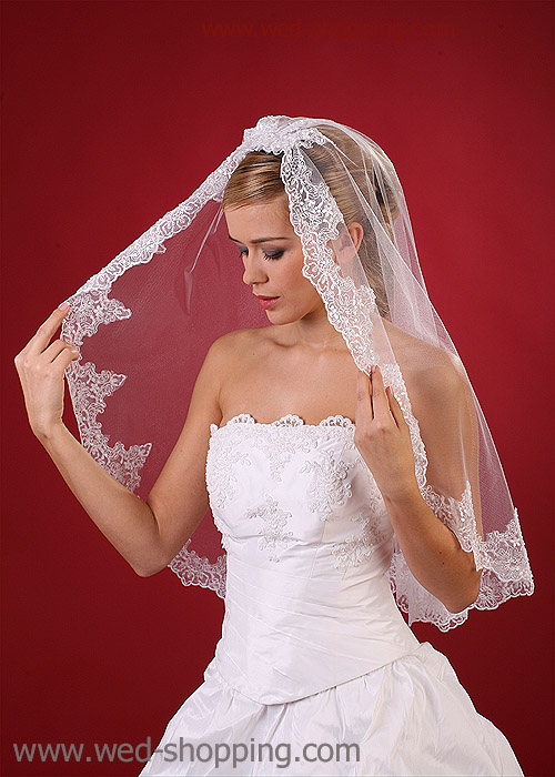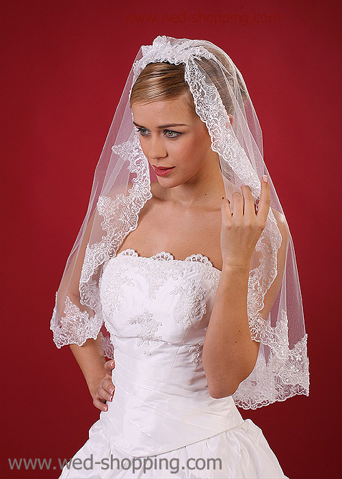 Spaanse Bruidssluier met kant Lengte: 80 cm Leverbaar in wit en ivoor Hoge kwaliteit. Gemaakt in de EU. Levering in circa 10 werkdagen. Vraag om een snellere levering.