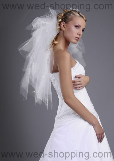 Tule Fanstasievol opgestoken sluier van traditioneel tule + 60 opaliserende Swarovski steentjes 80 cm lang Hoge kwaliteit. Gemaakt in de EU. Levering in circa 10 werkdagen. Vraag om een snellere levering. Trendy Bruidssluier met Swarovski steentjes.