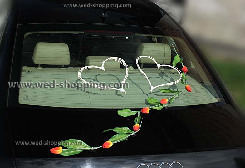 Een unieke decoratie voor uw auto. 2 grote harten versierd met parels (gemonteerd op een zuignap) 2 harten op de achterkant glas - kralen (met zuignappen) 4 harten op de zijkant van de auto (met zuignappen) Set van tulpen met zuignappen. Alle decoratie wordt aan de zuignap bevestigd. Zuignappen niet de autolak beschadigen en stevig vast te houden de decoratie. Decoratie is veilig voor autolak. Hoge kwaliteit. Gemaakt in de EU. Levering in circa 10 werkdagen. Vraag om een snellere levering.