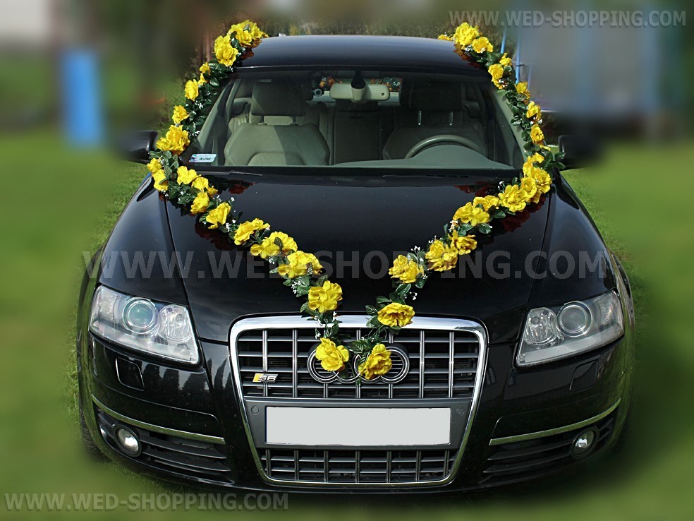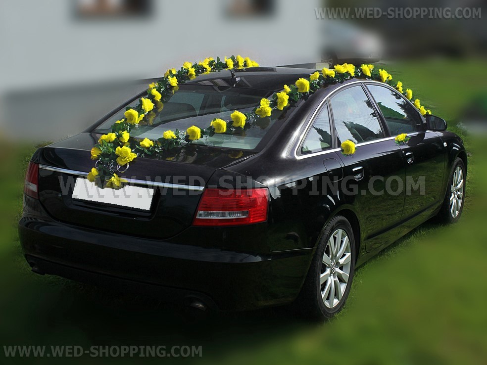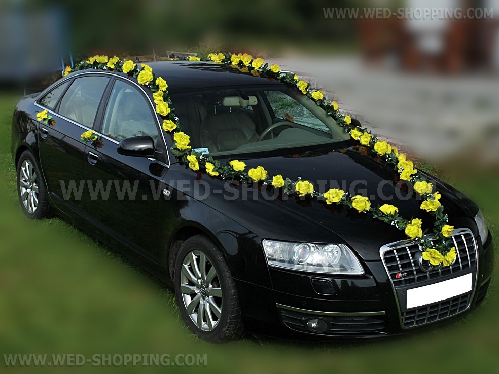 Mooie slingers met gele rozen. Het kan worden geregeld op welke manier. De kit bevat: - Zes slingers 1,8 m lang elke - Vier rozen op de zijkanten van de trouwauto te worden gemonteerd - Een set van zuignappen aan de slingers houden - Een set van groene draden (om slingers met zuignappen samenvoegen) . De kit is zeer eenvoudig op te lossen. Volledig klantgericht. Hoge kwaliteit. Gemaakt in de EU. Leveringstijd is circa 10 werkdagen. Vraag om een snellere levering.
