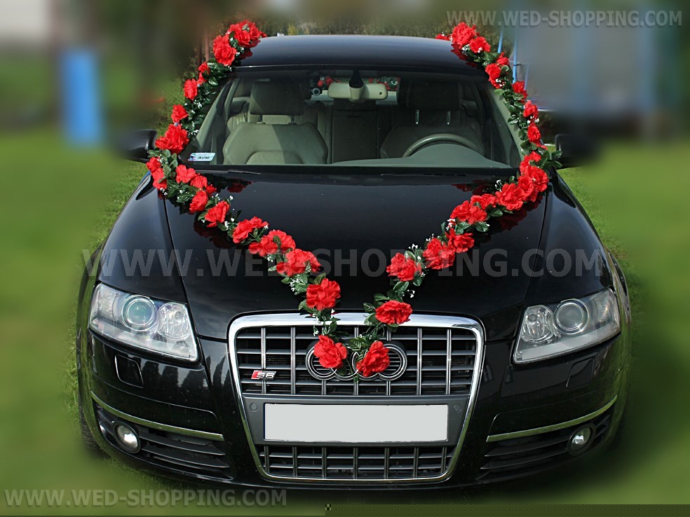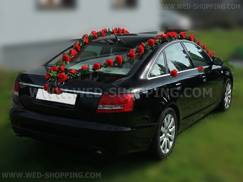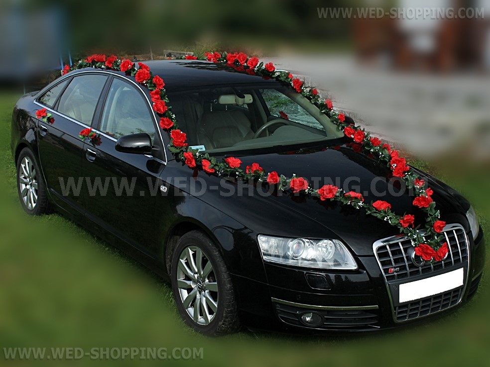Mooie slingers met rode rozen. Het kan worden geregeld op welke manier. De kit bevat: - Zes slingers 1,8 m lang elke - Vier rozen op de zijkanten van de trouwauto te worden gemonteerd - Een set van zuignappen aan de slingers houden - Een set van groene draden (om slingers met zuignappen samenvoegen) . De kit is zeer eenvoudig op te lossen. Volledig klantgericht. Hoge kwaliteit. Gemaakt in de EU. Levering in circa 10 werkdagen. Vraag om een snellere levering.