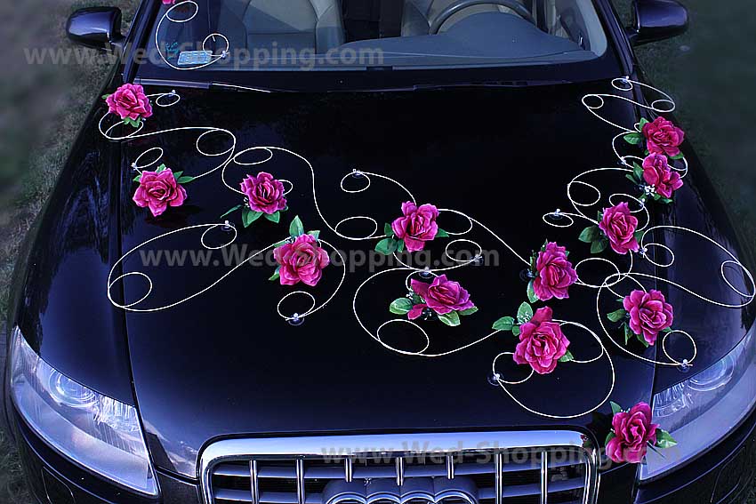 Decoratie bestaat uit: 24 rozen met bladeren 12 takjes van rotan met kralen Decoratie veilig voor autolak Hoge kwaliteit. Gemaakt in de EU. Levering in circa 10 werkdagen. Vraag om een snellere levering. Trouwauto versieren Bourgogne rozen