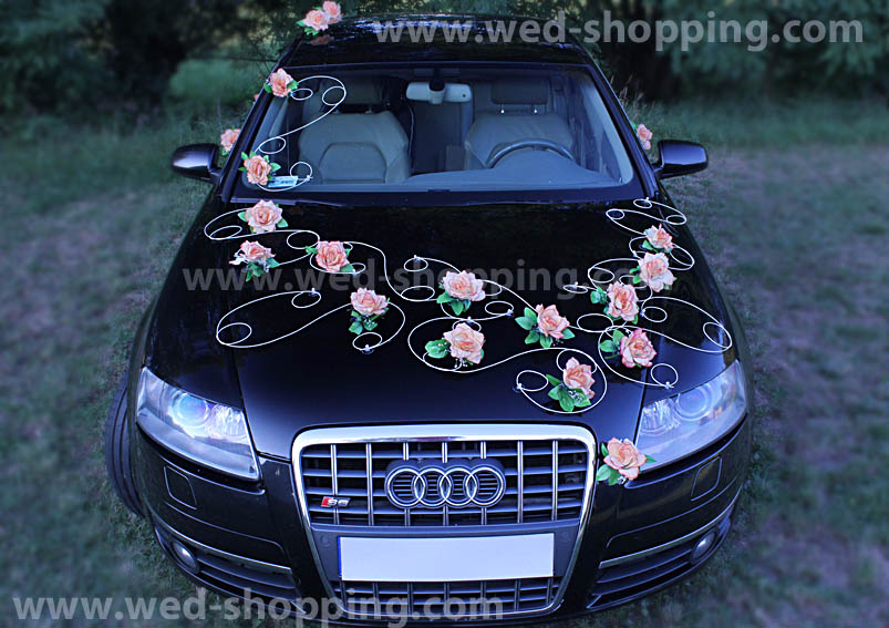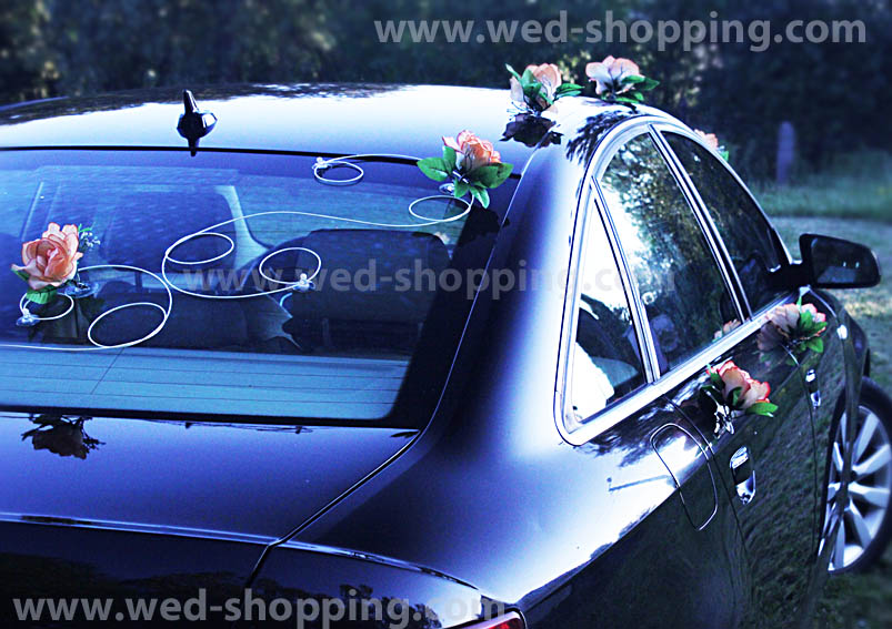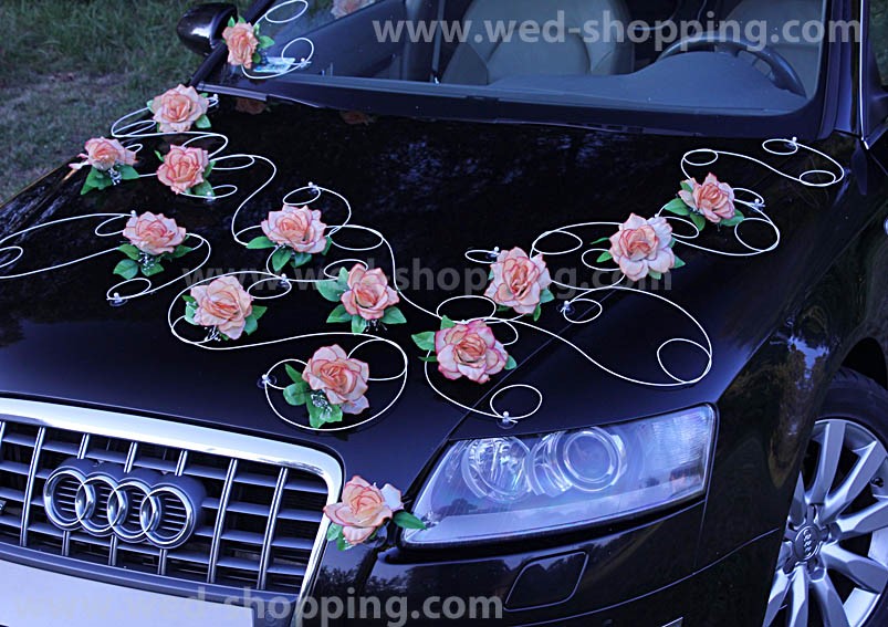 Decoratie bestaat uit: 24 rozen met bladeren 12 takjes van rotan met kralen Decoratie veilig voor autolak Hoge kwaliteit. Gemaakt in de EU. Levering in circa 10 werkdagen. Vraag om een snellere levering. Trouwauto versieren Salmon rozen