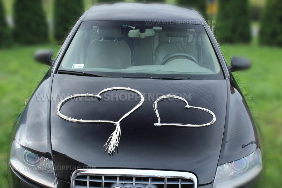 Een unieke decoratie gemaakt van rotan en plastic bloemen. De kit bestaat uit: - Twee grote harten met een breedte van ongeveer 60 tot 45 cm op de motorkap Alle elementen zijn voorzien van zuignappen die stevig de versieringen op de auto. Harten zijn versierd met kunstmatige parels. Hoge kwaliteit. Gemaakt in de EU. Levering in circa 10 werkdagen. Vraag om een snellere levering.