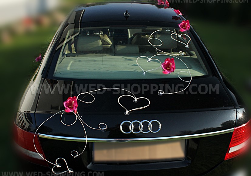 Decoratie bestaat uit: 24 orchideeën 12 rotan harten met staarten Decoratie veilig voor autolak Hoge kwaliteit. Gemaakt in de EU. Levering in circa 10 werkdagen. Vraag om een snellere levering.