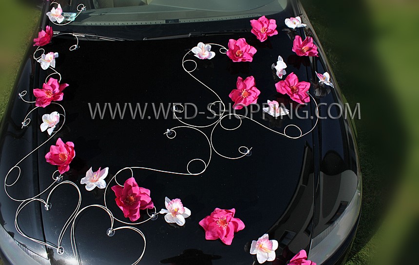 Decoratie kit: - 24 kunstmatige roze dahlia - 24 kunstmatige witte orchideeën - Acht rotan twijgen - Twee grotere harten voor motorkap - Zes kleinere harten voor deuren en achter Zuignappen inbegrepen. Hoge kwaliteit. Gemaakt in de EU. Levering in circa 10 werkdagen. Vraag om een snellere levering.