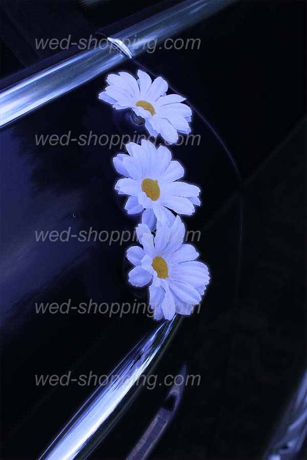 Bruidssalon.com » Trouw Decoratie » Trouwauto versiering » Trouwauto versiering witte margrieten DEK1021