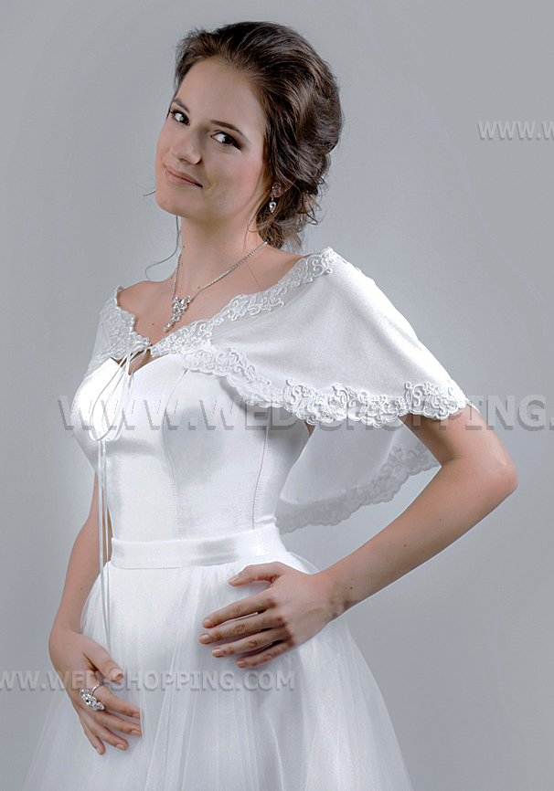 Mooie tule cape met kant hals en kant langs de onderkant. Uitstekende aanvulling op uw strapless trouwjurk. Een maat. Hoge kwaliteit. Gemaakt in de EU. Levering in circa 10 werkdagen. Vraag om een snellere levering.