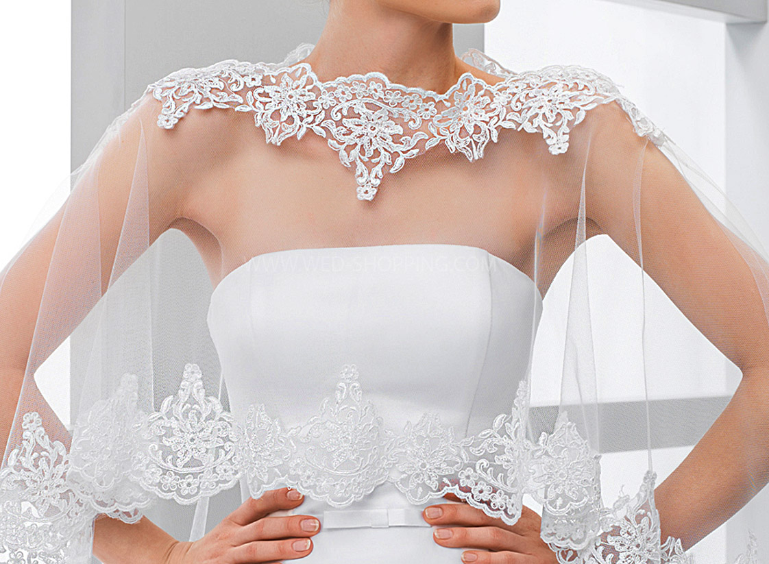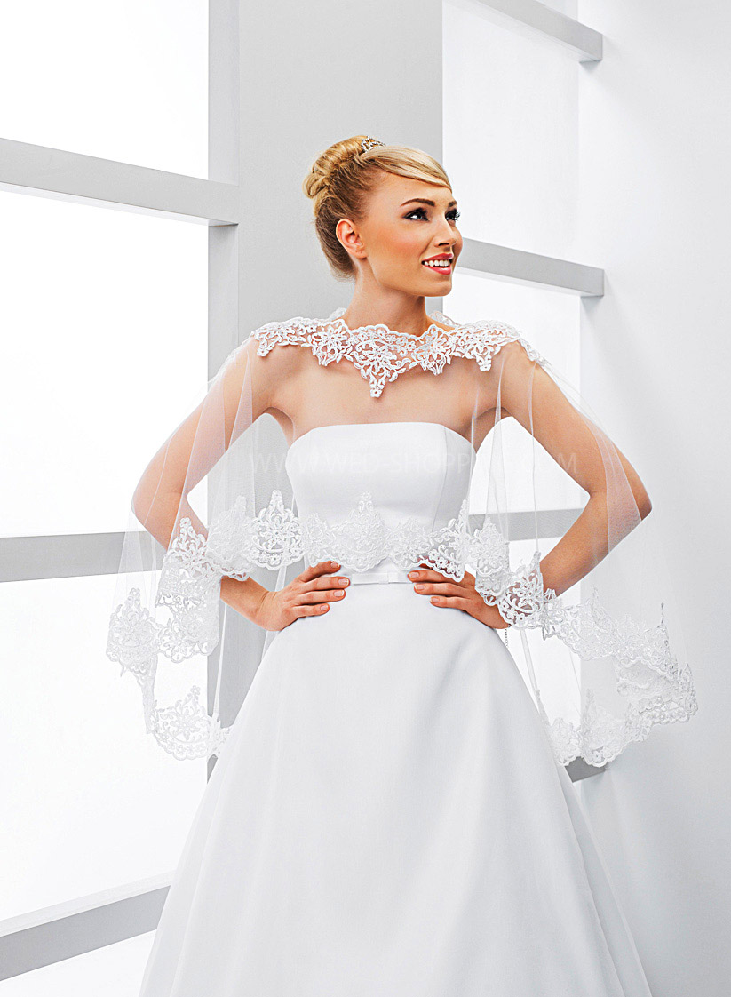 Mooie tule cape met kant Uitstekende aanvulling op uw strapless trouwjurk. Een maat. Hoge kwaliteit. Gemaakt in de EU. Leveringstijd is circa 10 werkdagen. Vraag om een snellere levering.