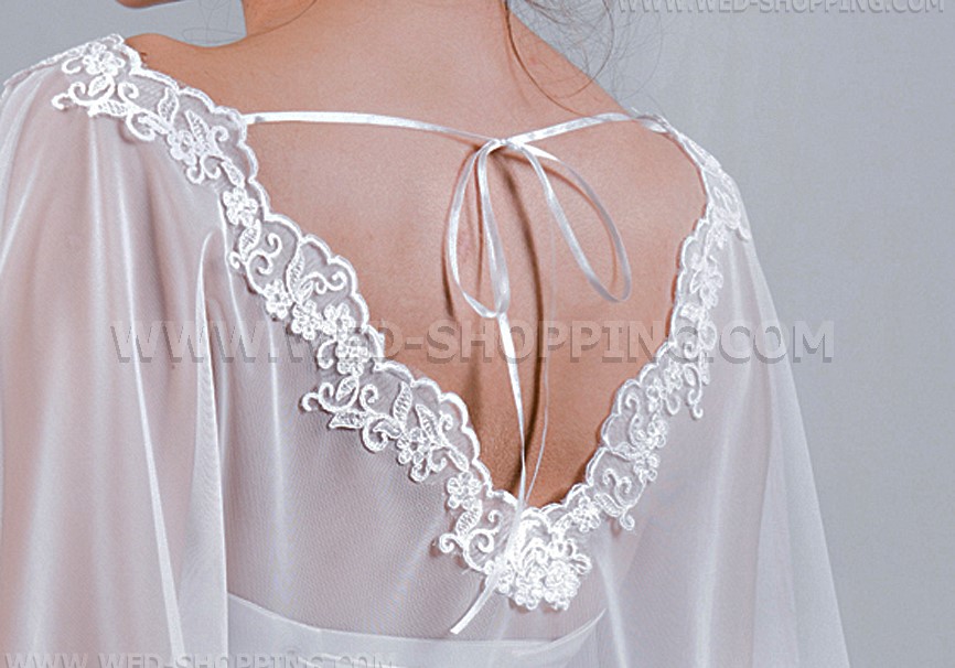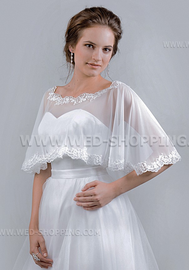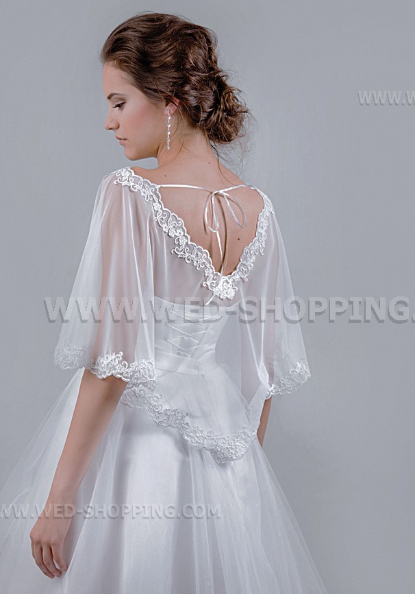 Mooie tule cape met kant hals en kant langs de onderkant. Uitstekende aanvulling op uw strapless trouwjurk. Een maat. Hoge kwaliteit. Gemaakt in de EU. Levering in circa 10 werkdagen. Vraag om een snellere levering.
