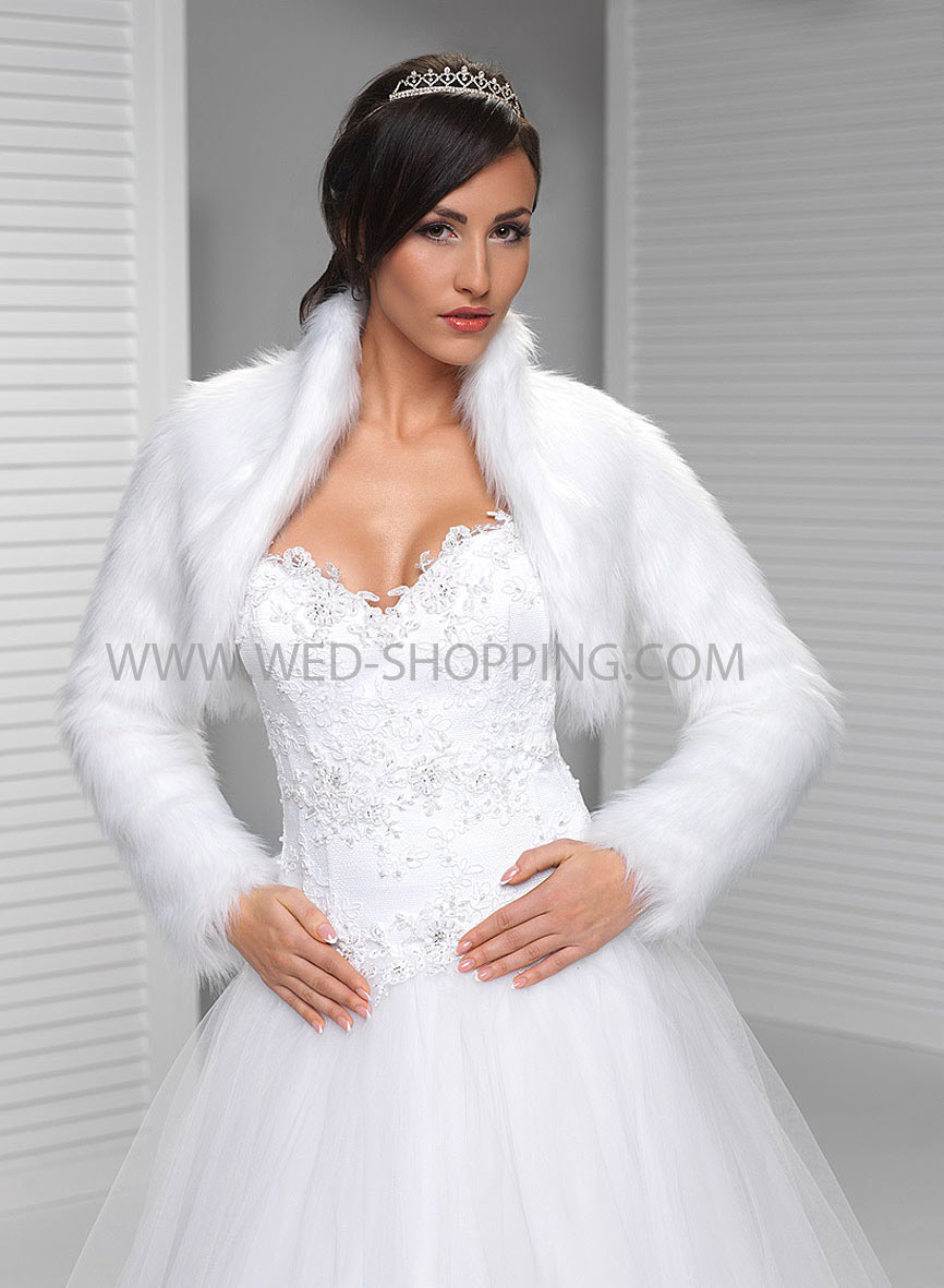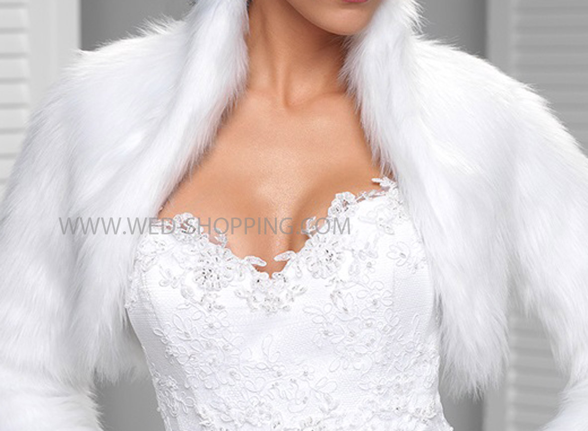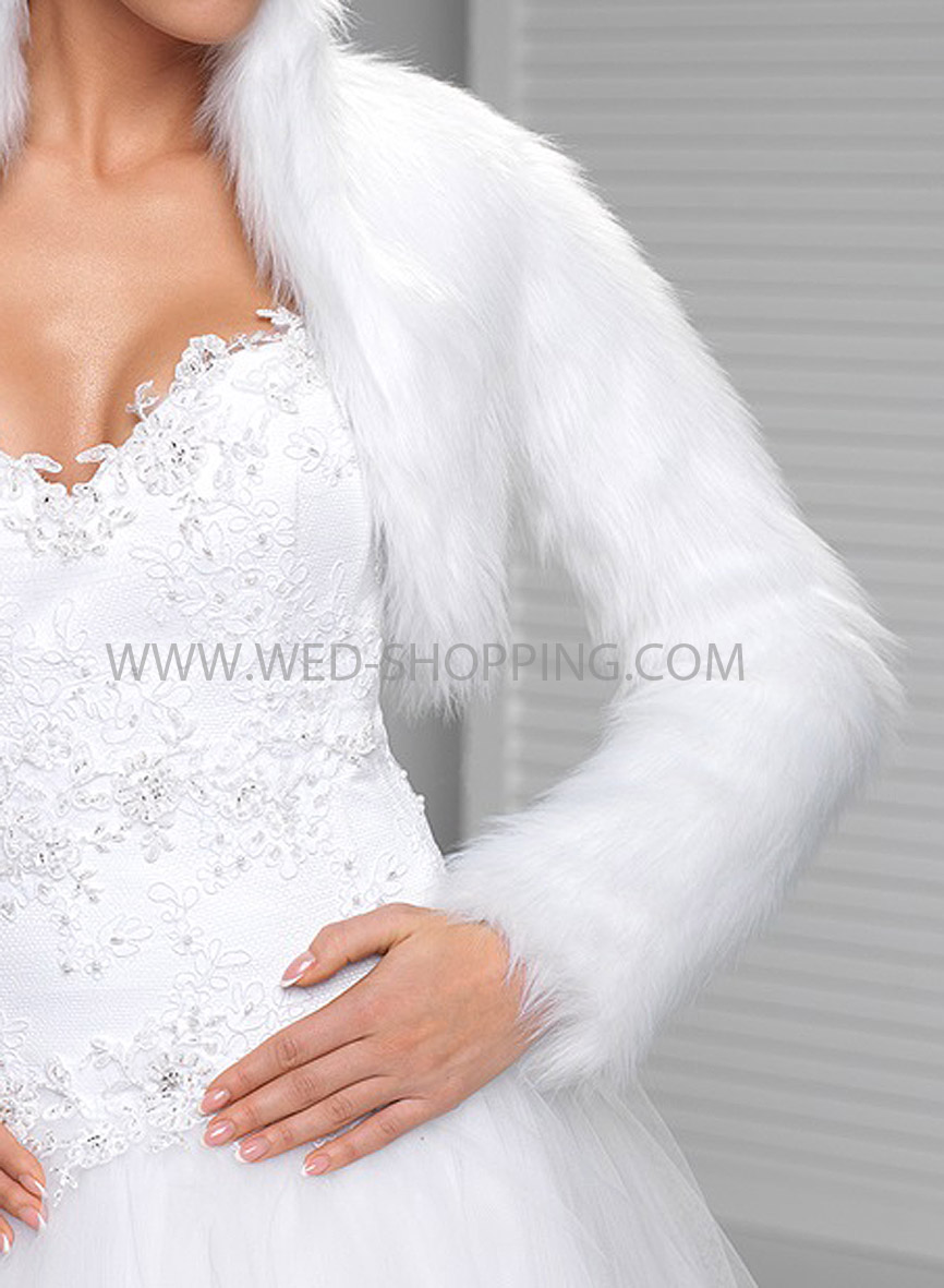Bolero van kunstbont voor bruids Staande kraag en lange mouwen. leverbaar in wit, ivoor en zwart. Levering: standaard + 1 week Maat: S-6XL Hoge kwaliteit. Gemaakt in de EU. Levering in circa 10 werkdagen. Vraag om een snellere levering.