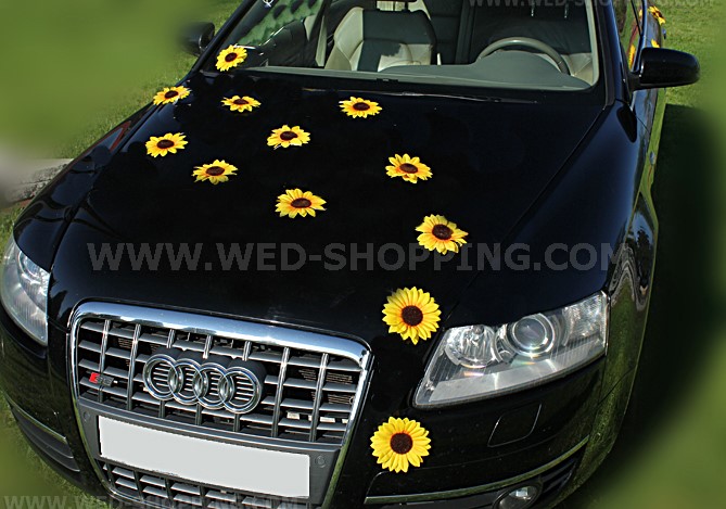 Decoratie bestaat uit: 24 zonnebloemen (aan de voorkant, achterkant en zijkanten van de auto) Decoratie in de foto is slechts een voorstel en mag vrij worden gelegd. Decoratie wordt op zuignappen die veilig zijn voor de lak zijn gemonteerd. Hoge kwaliteit. Gemaakt in de EU. Levering in circa 10 werkdagen. Vraag om een snellere levering.